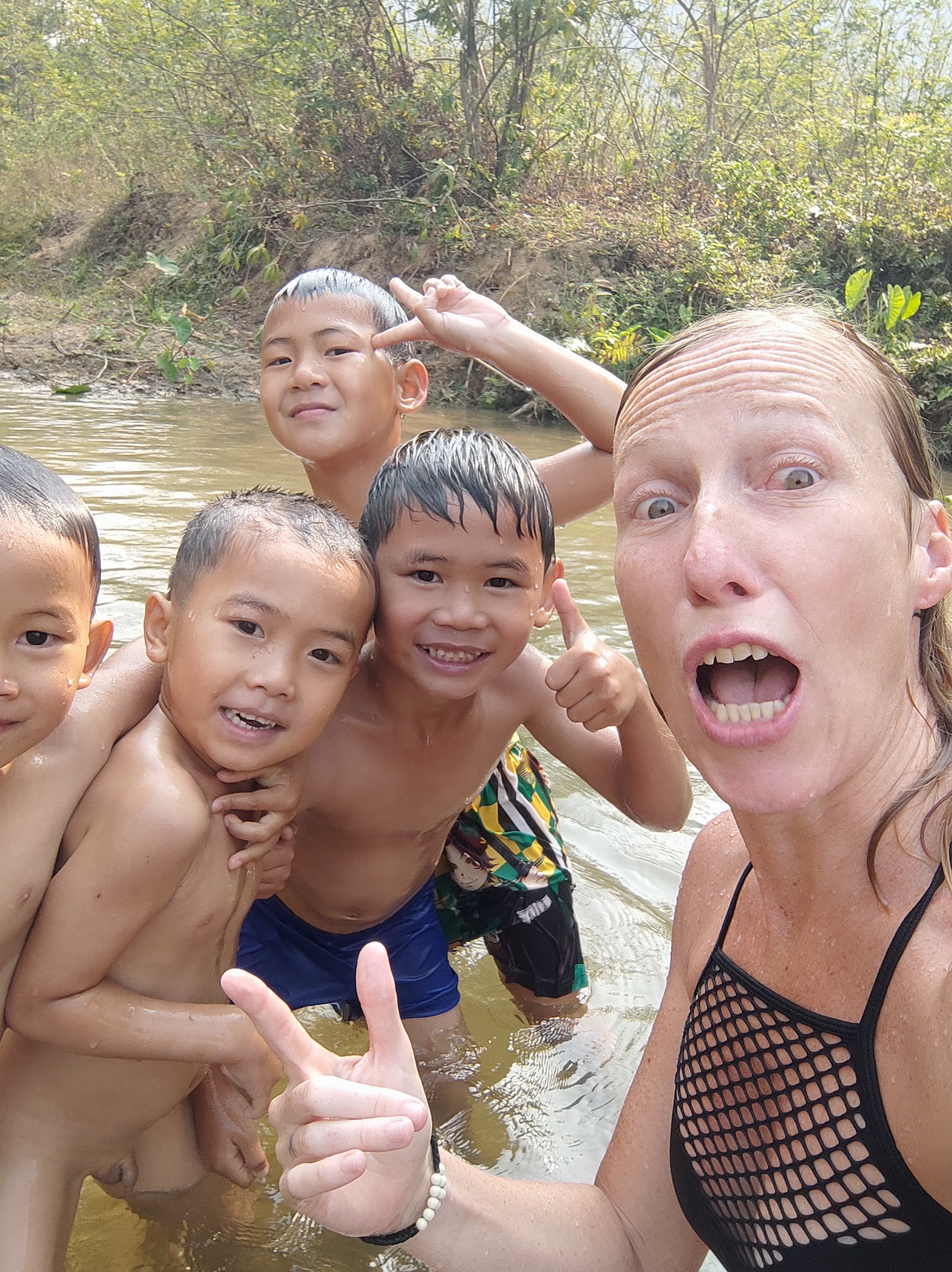 Visé par la tête de poulet, tu bois cul sec ton gobelet. Heureusement que la rivière est à côté pour se rafraichir les idées, je suis souvent visée!