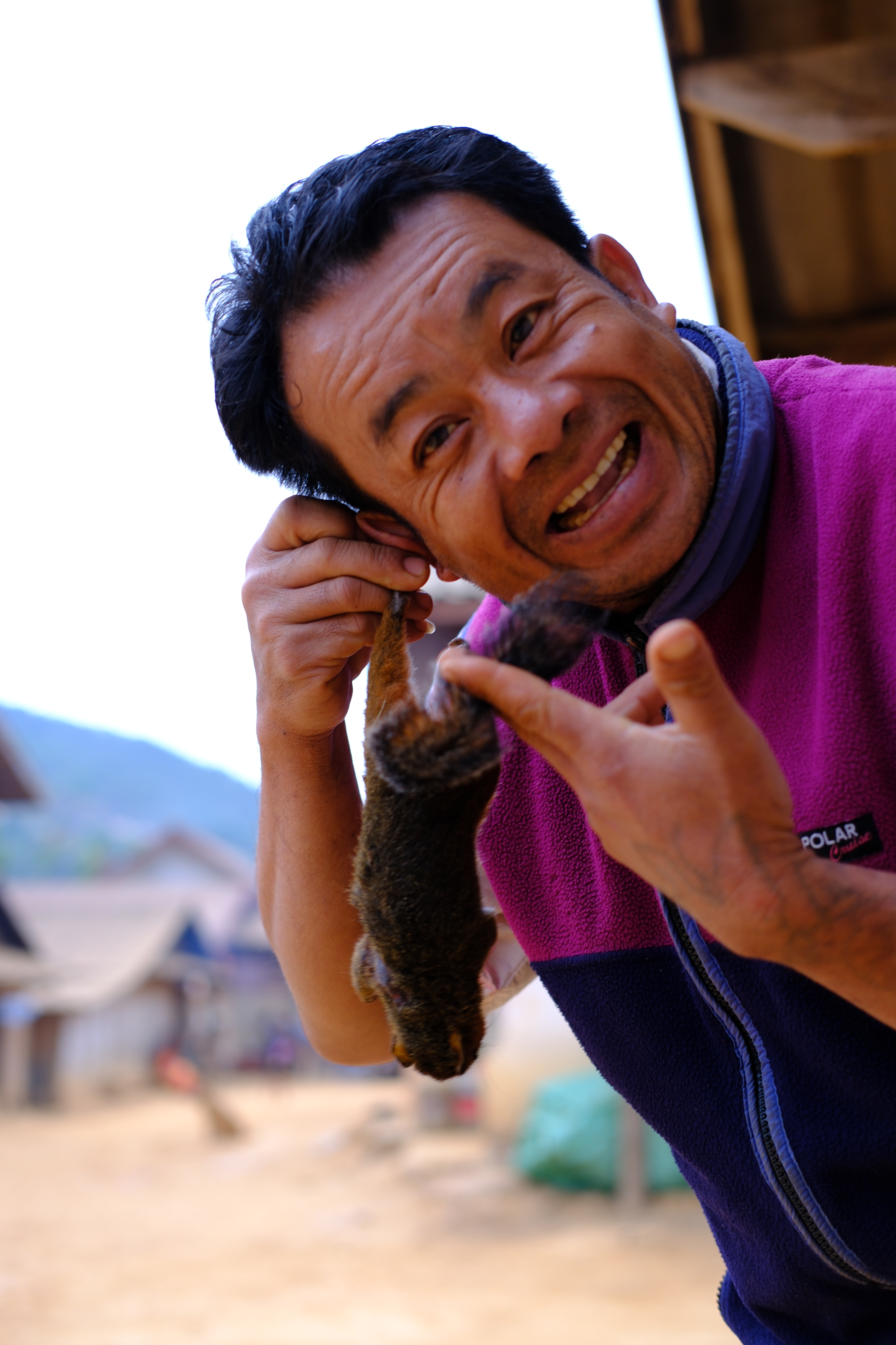 Je ne savais pas encore à ce moment là que j’étais tombée sur le Antoine de Maximy local, le roi du freestyle, qui chaque nuit cherche un endroit dans les villages khmu et hmong où nous arrivons pour dormir et ne prévoit aucun repas (heureusement que j’aime le sticky rice, servi matin – midi et soir et si pratique à emporter en rando).